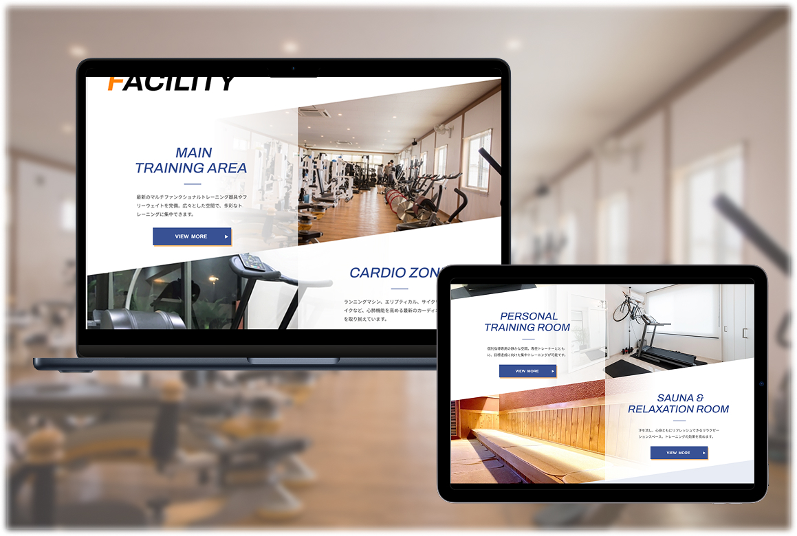 施設案内のセクションは写真を大きく見せ、ユーザーが想像しやすくなるよう心がけました。